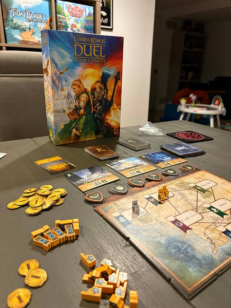 When Lord of the Rings: Duel for Middle Earth was released, it didn’t jump out at me since I don’t really have a connection to the IP. My wife loves it. The longer it sat on the retail shelves, the more praise it received. So toward the end of last year, we picked it up on sale at Barnes and Noble and finally tabled it this past weekend.